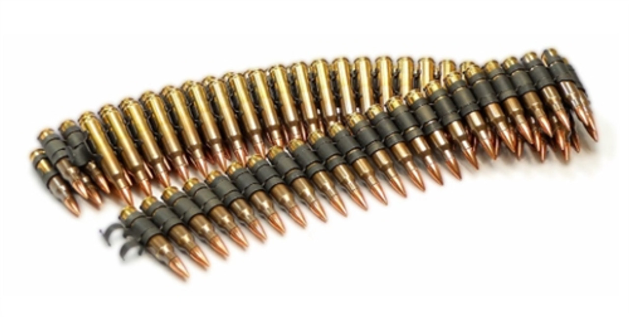 True mil-spec production from the NATO military contract production line. Widely regarded as the finest linked machine gun ammunition in the world. For training, testing and use by professionals in movie/television productions.