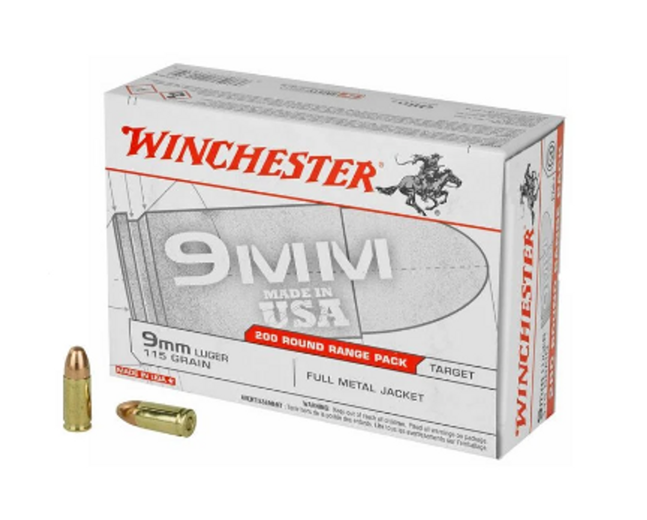 Winchester 9mm Luger Ammo 115 Grain Full Metal Jacket