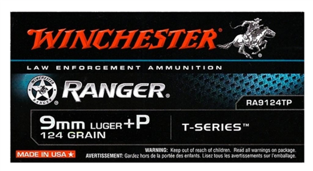 Winchester 9mm Luger Ammo 124 Grain +P Ranger T-Series Jacketed Hollow Point