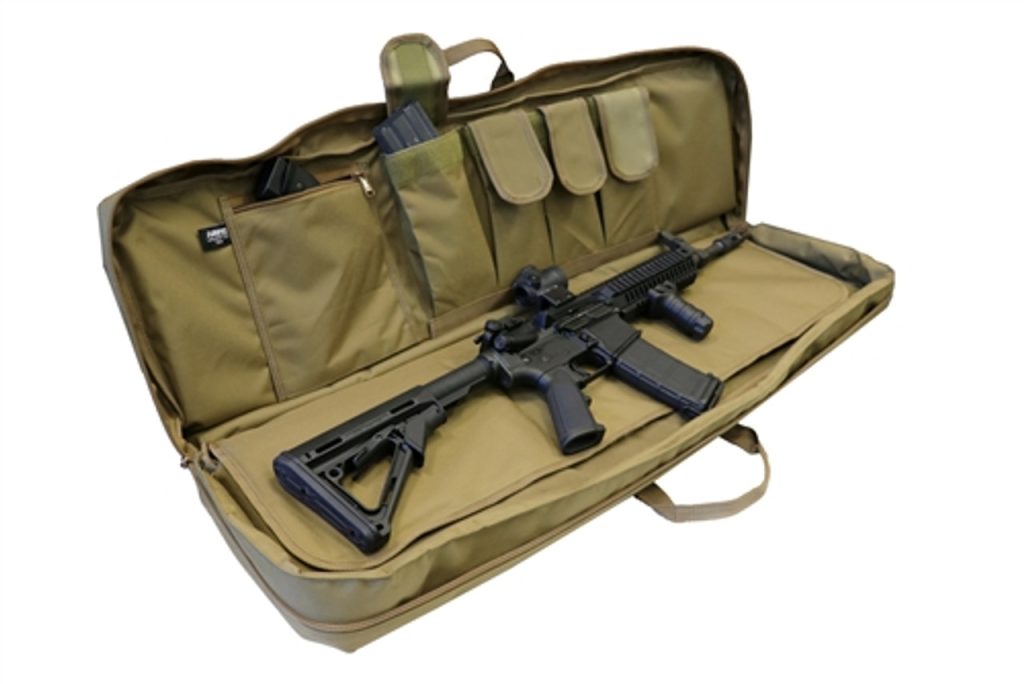 The discreet tactical rifle case is made to carry your tactical rifle while keeping a low profile. Manufactured from tough nylon with features designed for convenience and functionality, this case will keep your rifle, accessories, and magazines protected on the go. Cases are approximately 36.5 inches long, 10.5 inches wide, and 4 inches thick. For a snug fit.